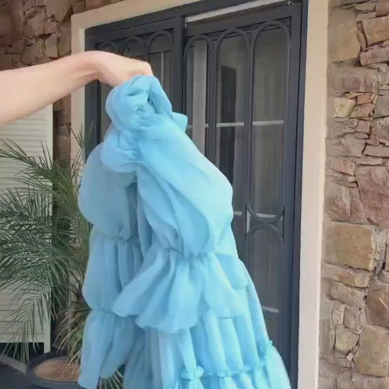 aqua blue with a v-neckline tiered Mini Dress