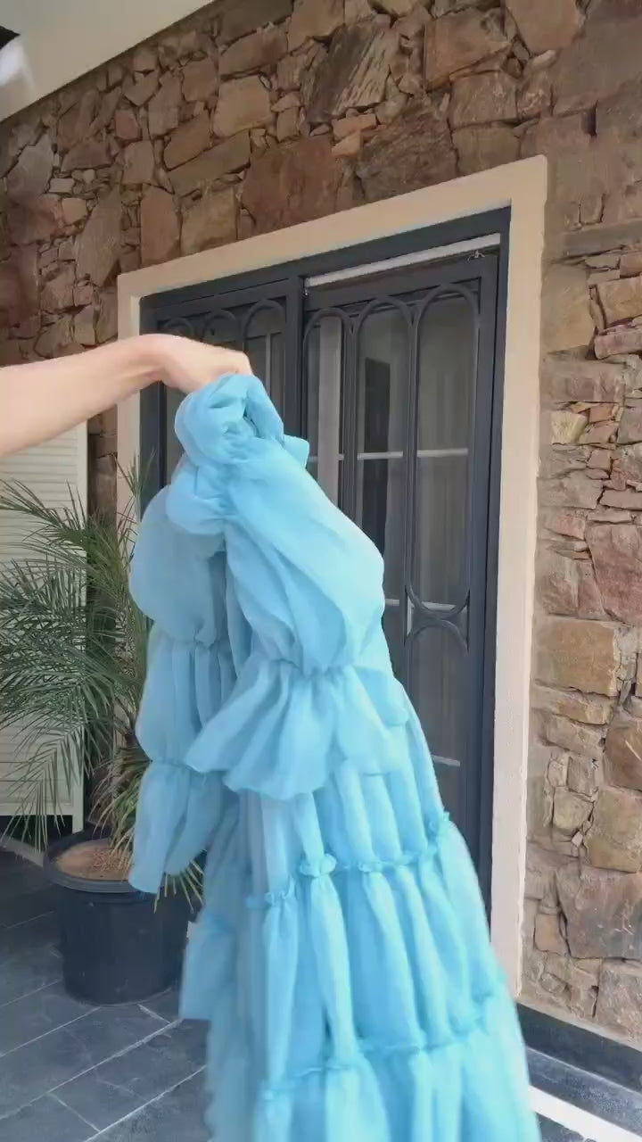 ⭐ No reviews yetaqua blue with a v-neckline tiered Mini Dress