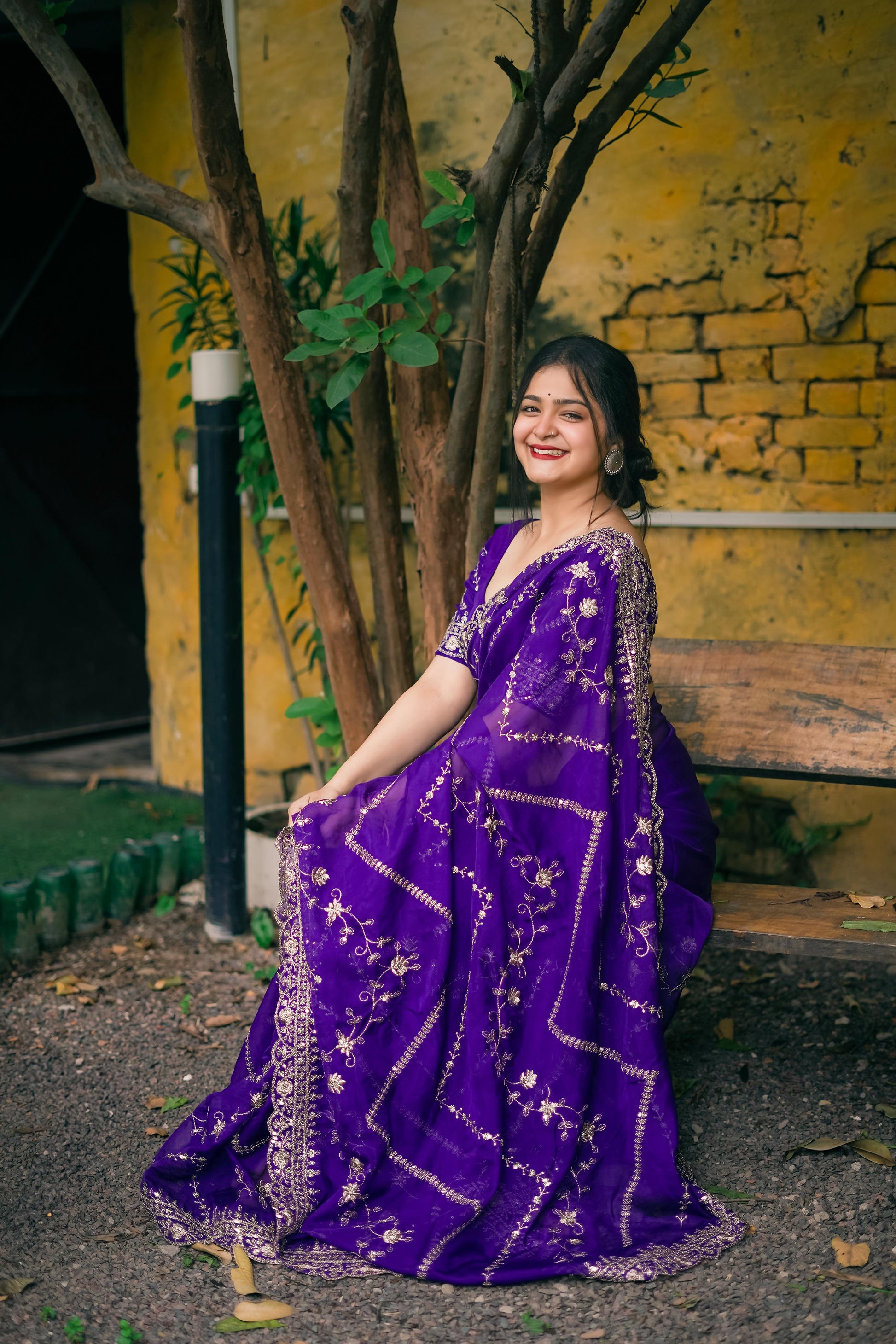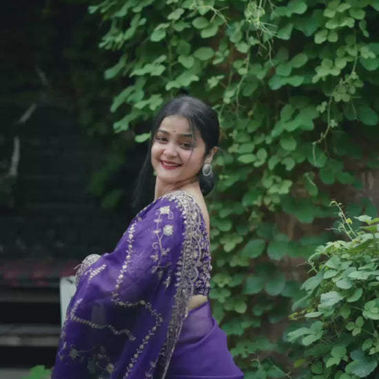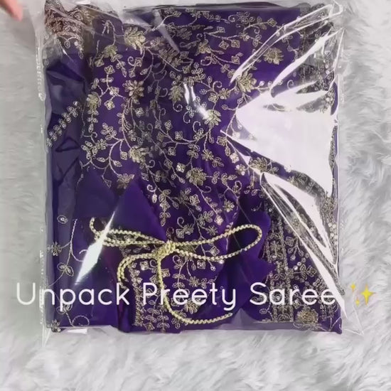 Beautiful Purple Organza Saree with Sequence Embroidery