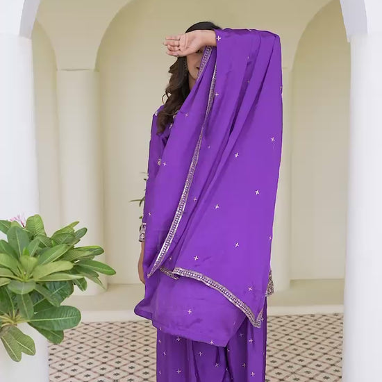 Beautiful Silk Embroidery Sequence Work Palazzo Suit
