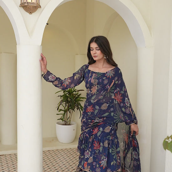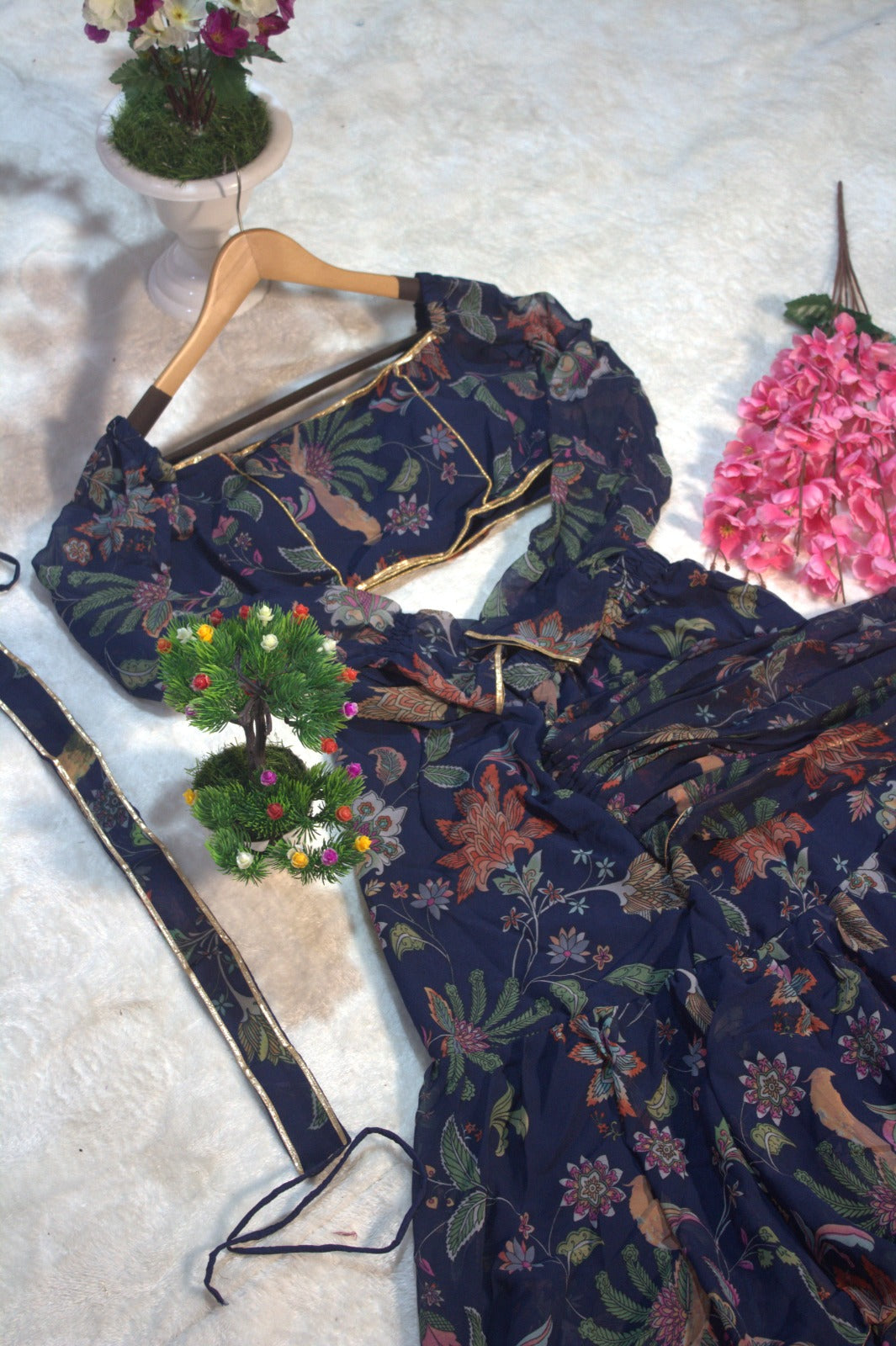 Blue Georgette Floral Digital Printed Ready to Wear Saree