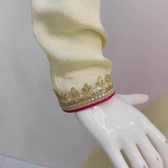 Fabric : Chinon Work : Golden Lace Detailing with Piping Height : 50 inches