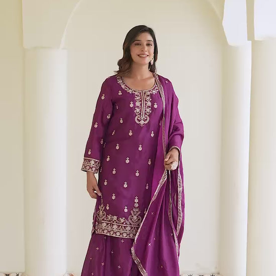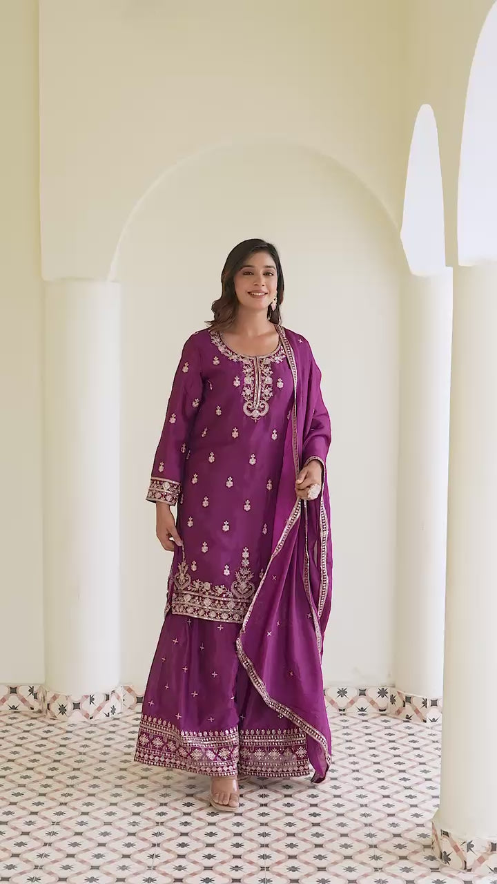 Delightful Wine Color Chinon Silk Palazzo Suit