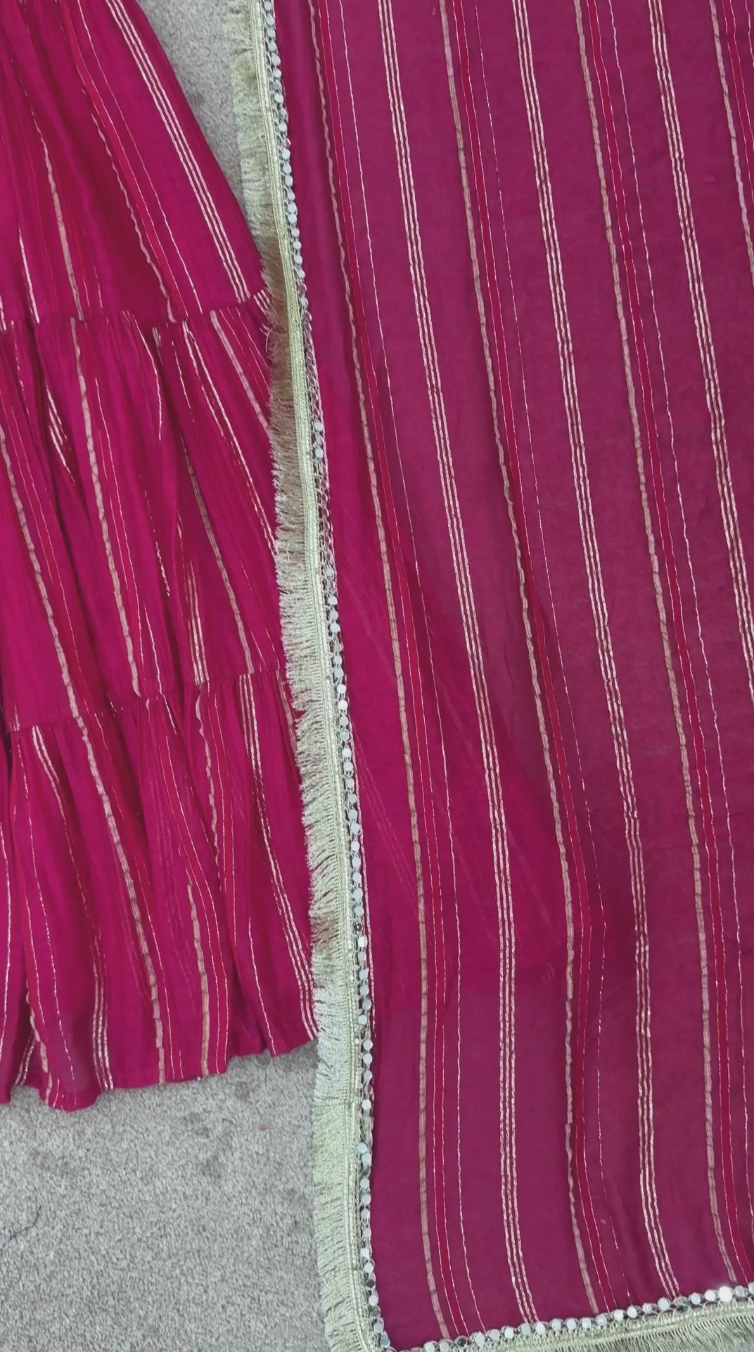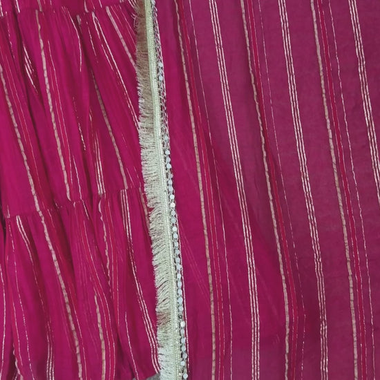 Designer Mal Chanderi Ruffle Gown with Dupatta & Pant