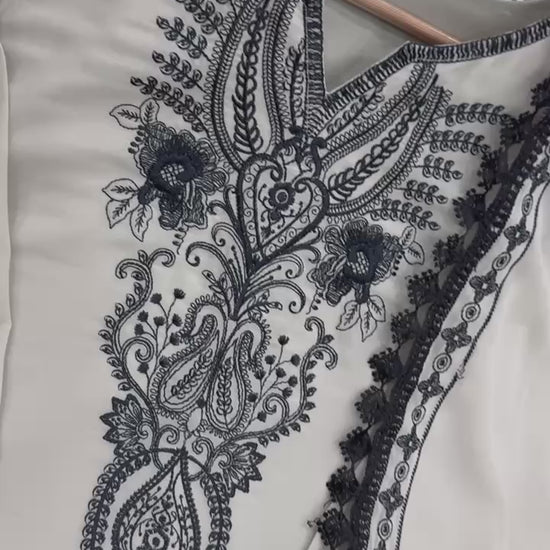 Fabric – Heavy Faux Georgette with Embroidery Work and GPU Lace Border