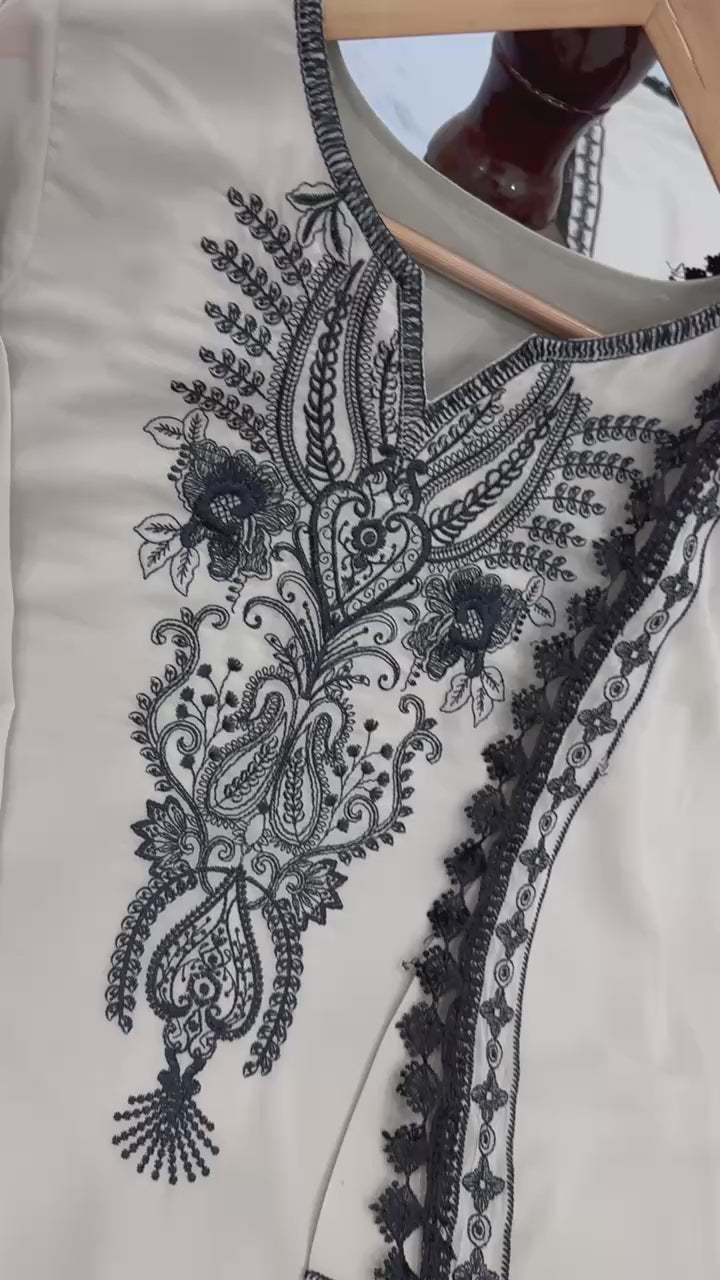 Designer Readymade Faux Georgette Off-white Suit Set