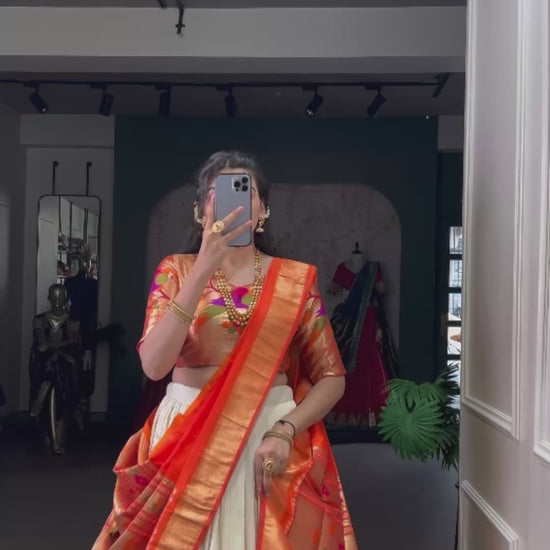 Designer Vichitra Silk Creamy Paithani Lehenga Choli