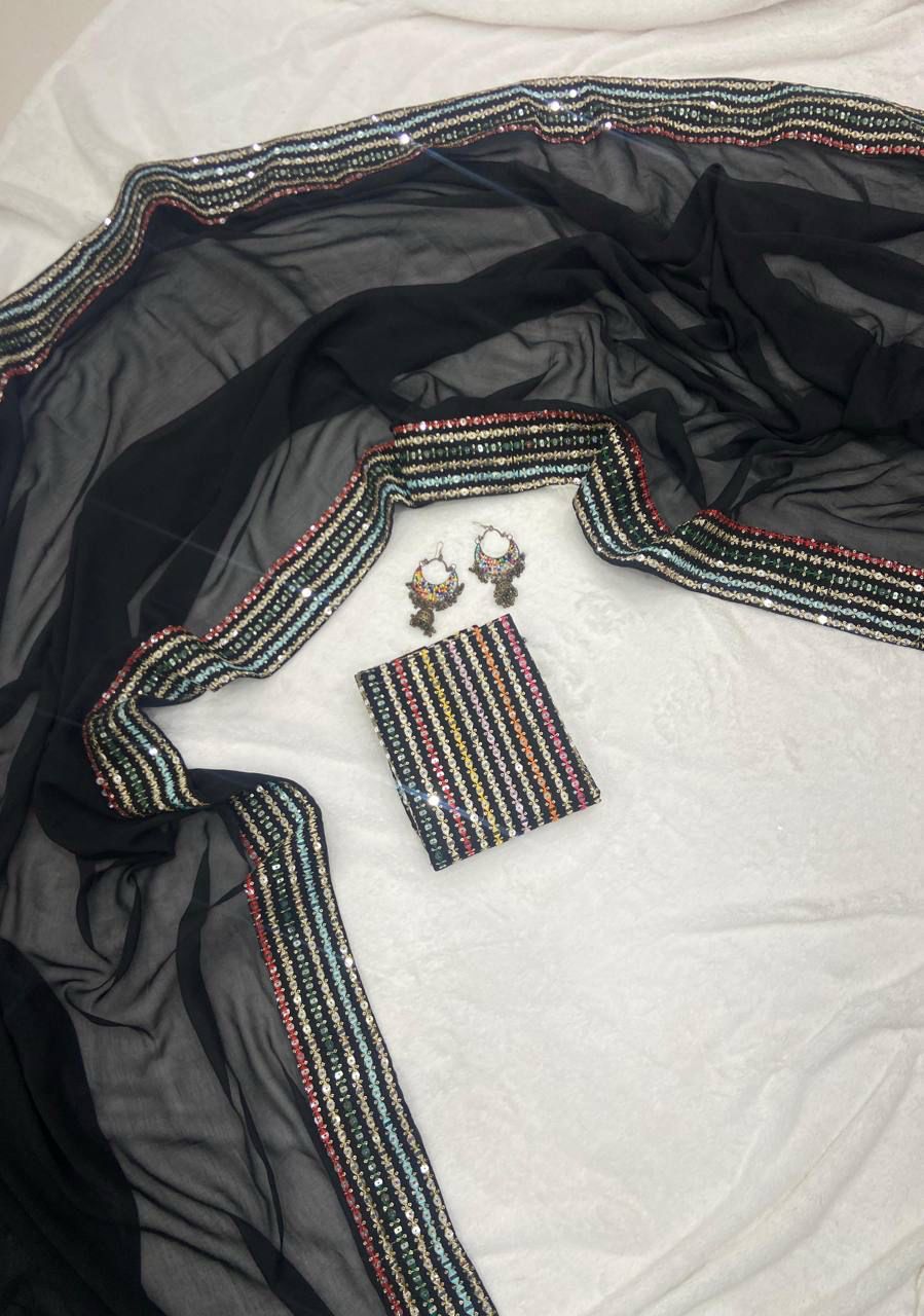 Elegant Black Georgette Saree with Multi color Embroidered Blouse