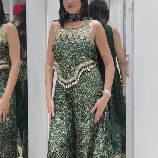 ⭐ No reviews yetBandhani Print Georgette Kurti Palazzo Set with Mirror Work Dupatta