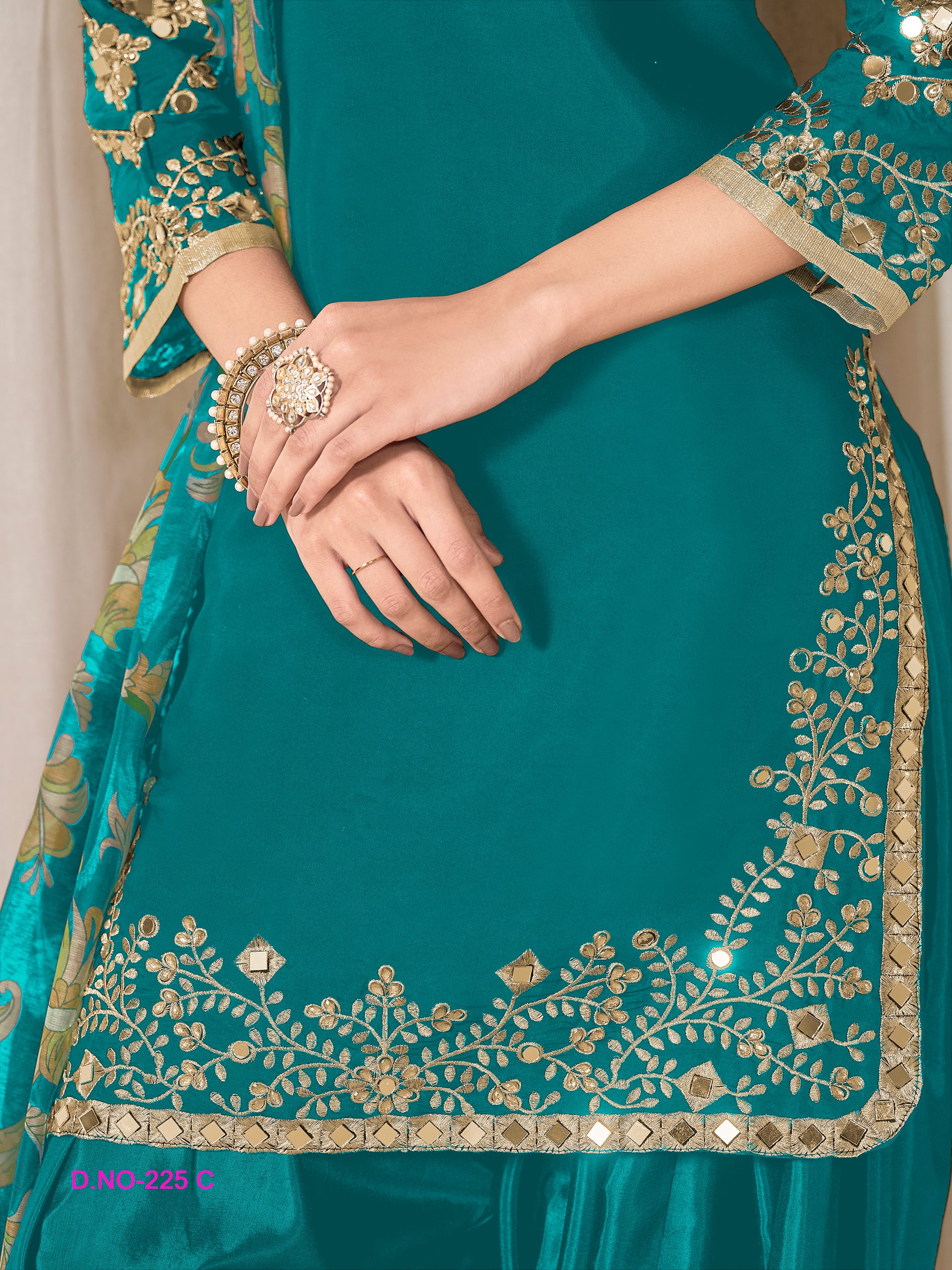 Elegant Silk Teal Panjabi Suit with Embroidery Work