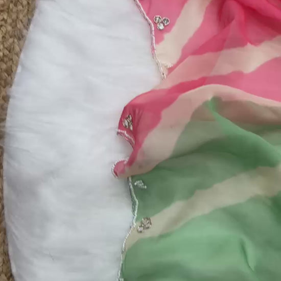 Elegent Soft Silk Lehriya Mirror Work Saree