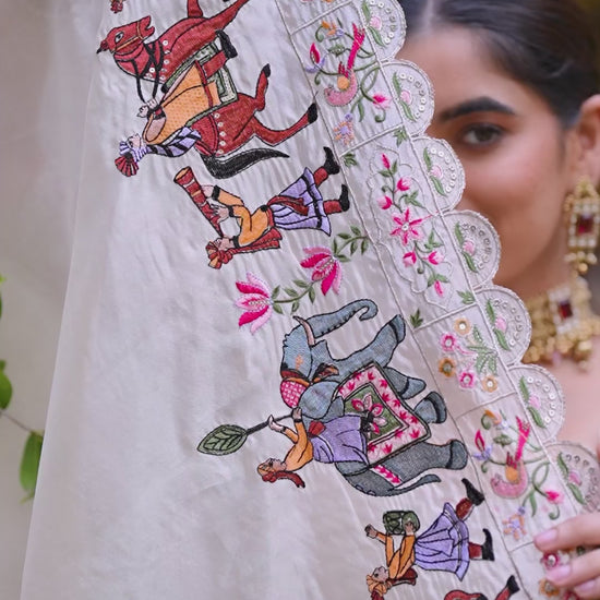 ⭐ No reviews yetA Line Lavender Mul Chanderi Kurti Pant Dupatta Set
