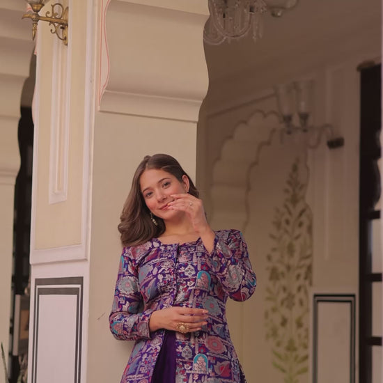 ⭐ No reviews yetA Line Lavender Mul Chanderi Kurti Pant Dupatta Set