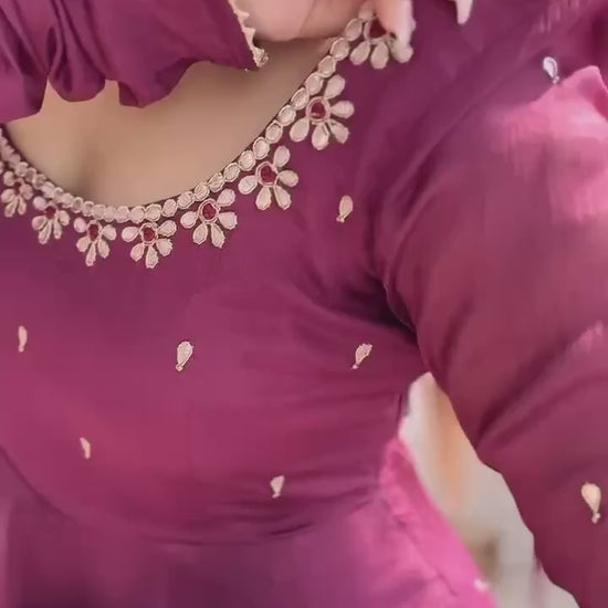 ⭐ No reviews yetBeautiful Handwork Purple Saree With Stich Blouse