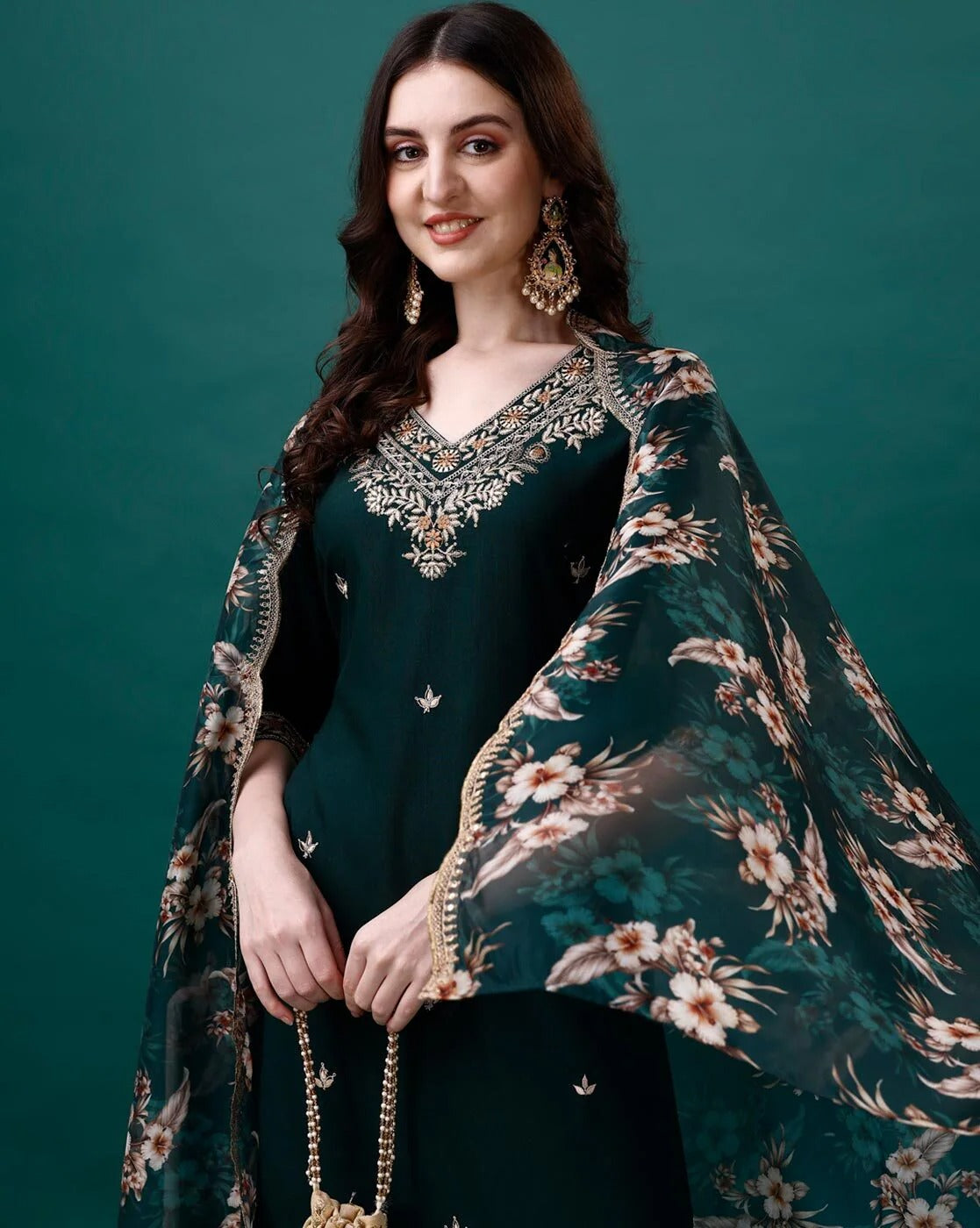 Embroidery Sequins Work Kurti Pant And Dupatta Set