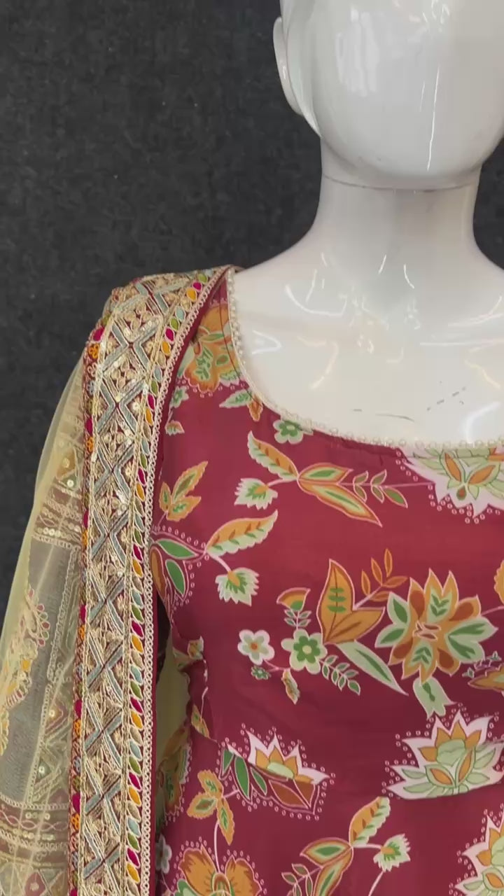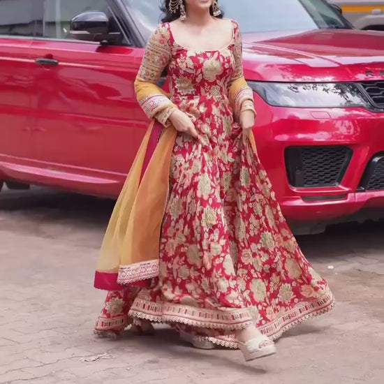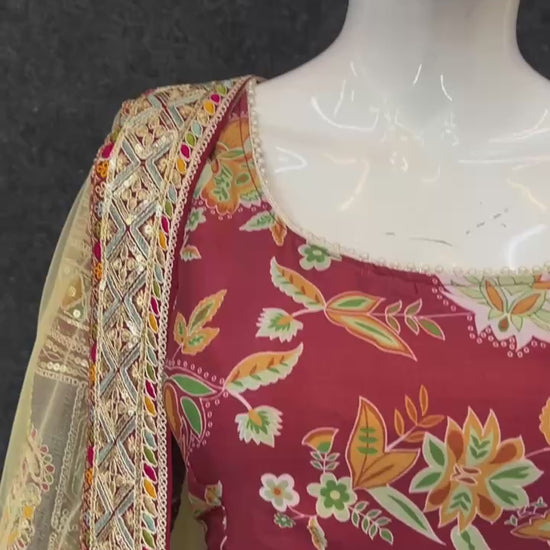 Work : Embroidery Multi Thread & Sequins Work With Digital Floral Prints