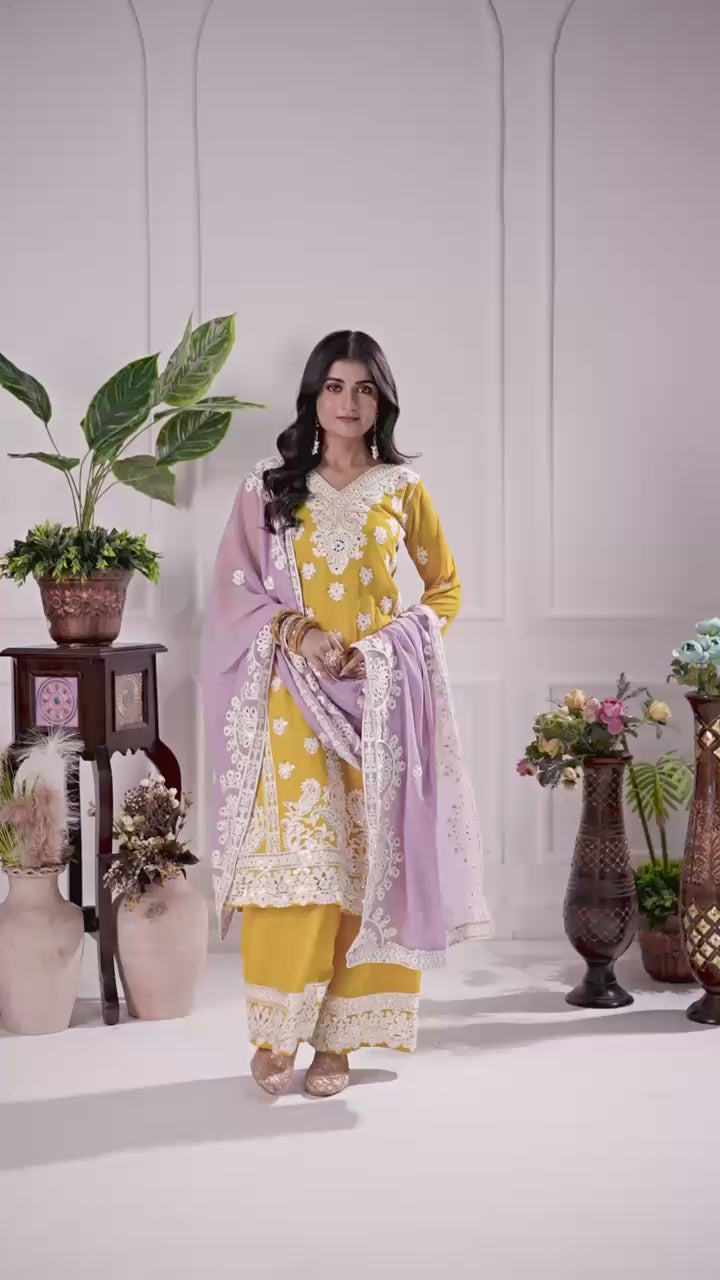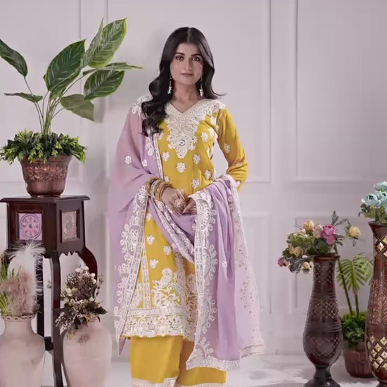 Heavy Faux Georgette Embroidered Suit with Palazzo & Dupatta