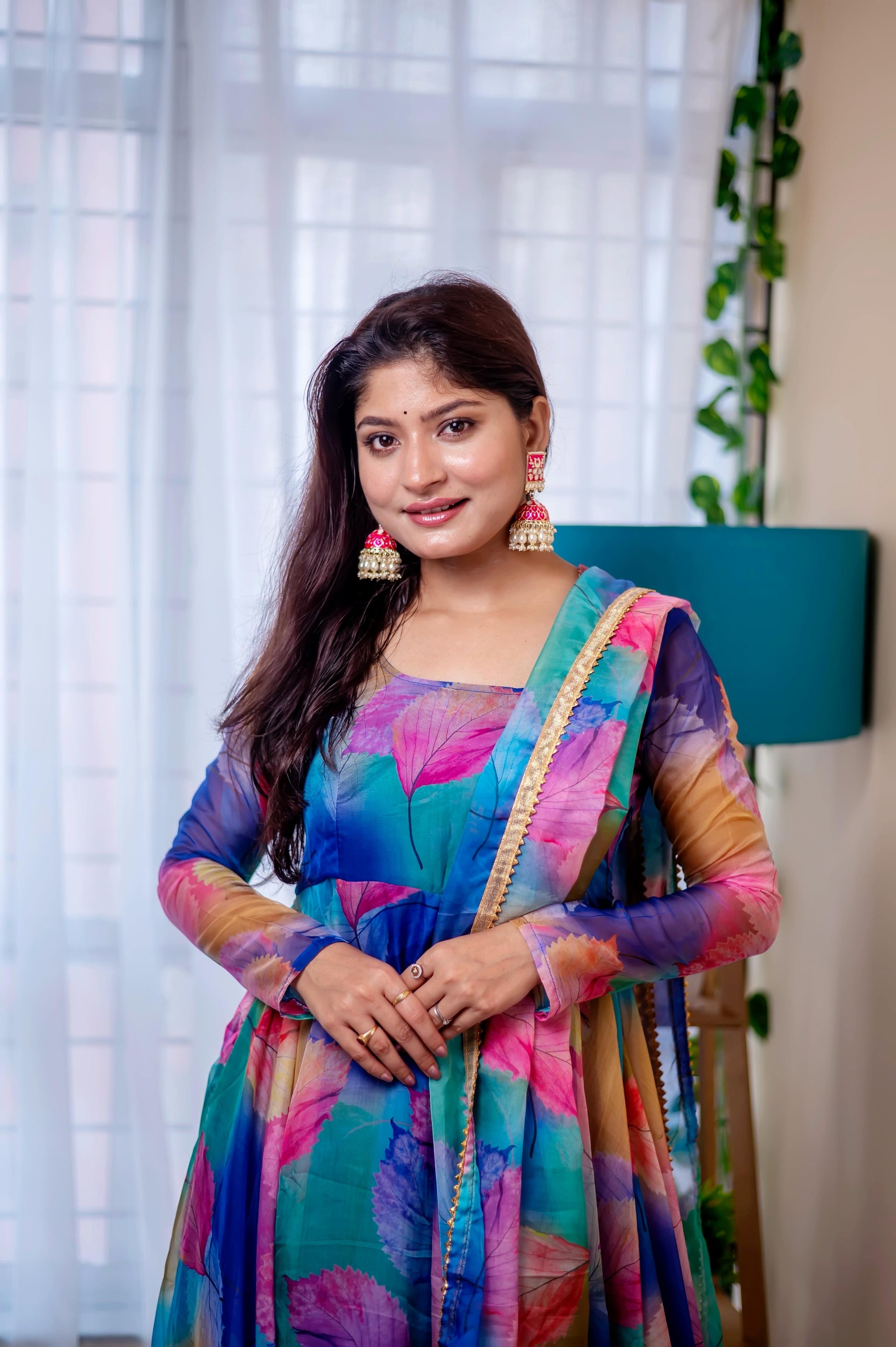 Heavy Flair Digital Print Organza Taby Silk Gown Set