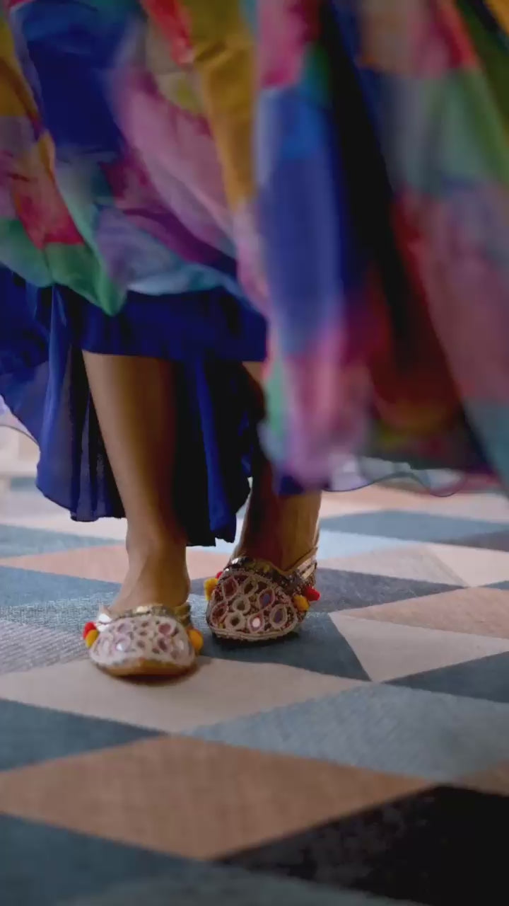 Dupatta : Organza Taby Silk With Digital Print , Four Side Golden Samosa Lece Broder