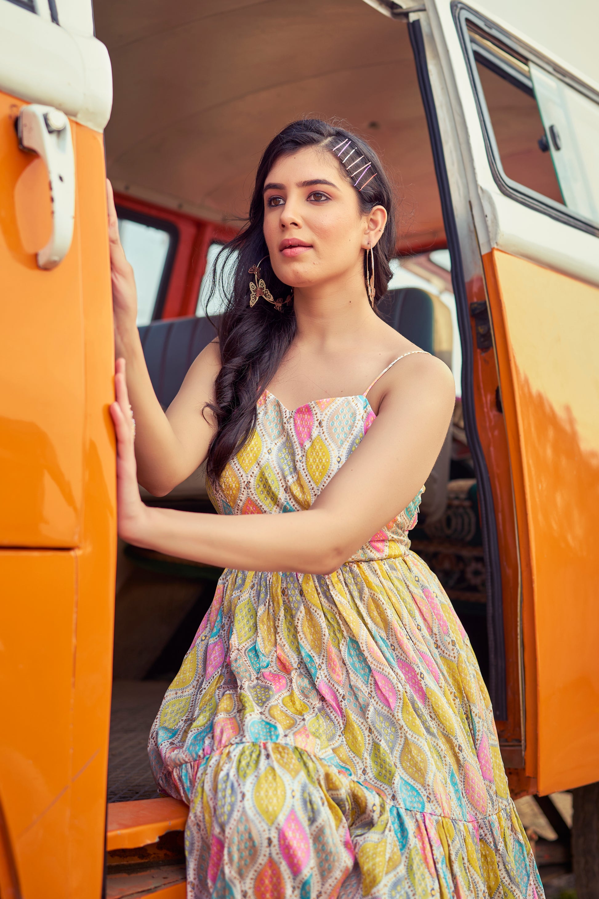 Mannant Yellow Chinon 4.5Mtr Flared Gown
