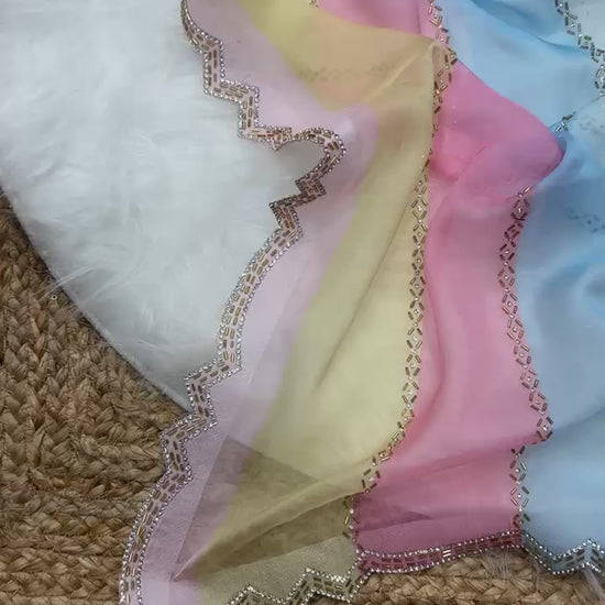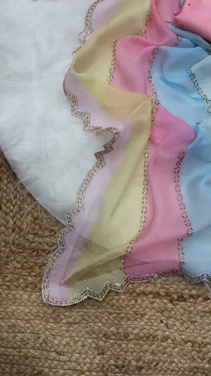work : beautiful hot fix Val and diamond work on lining and border with cut work