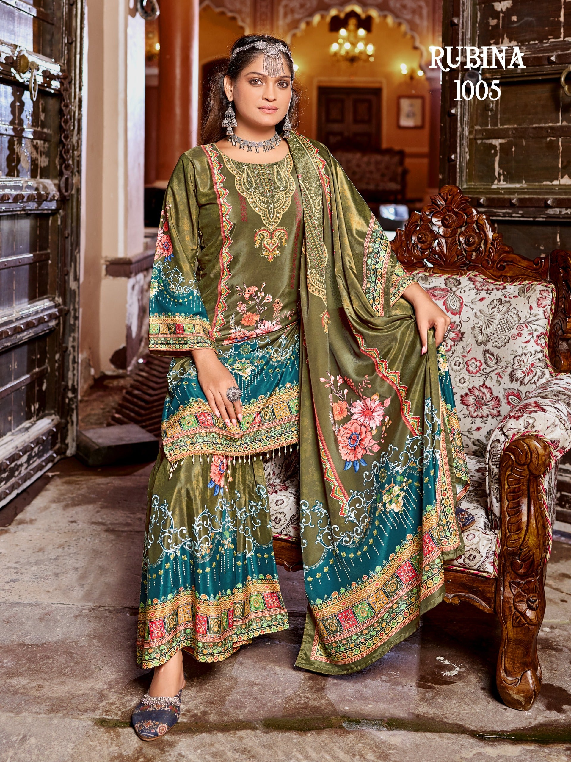 Elevate your ethnic wardrobe with this stunning Rubina Ensemble, crafted in luxurious pure crape silk with vibrant digital prints. Designed for both comfort and style, this outfit is perfect for festive occasions, weddings, and special gatherings.
