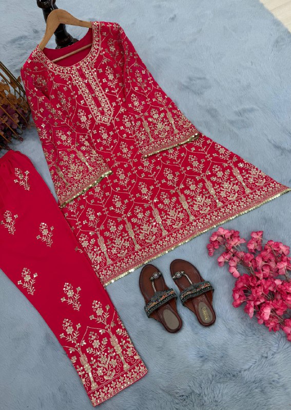 Party Wear Look Pure Heavy Georgette Pink Cord Set
