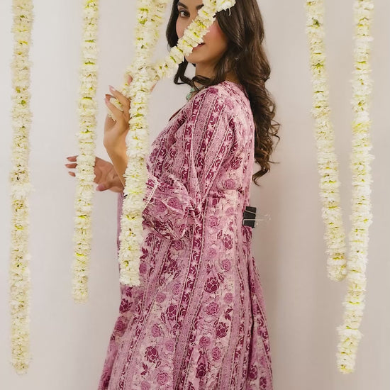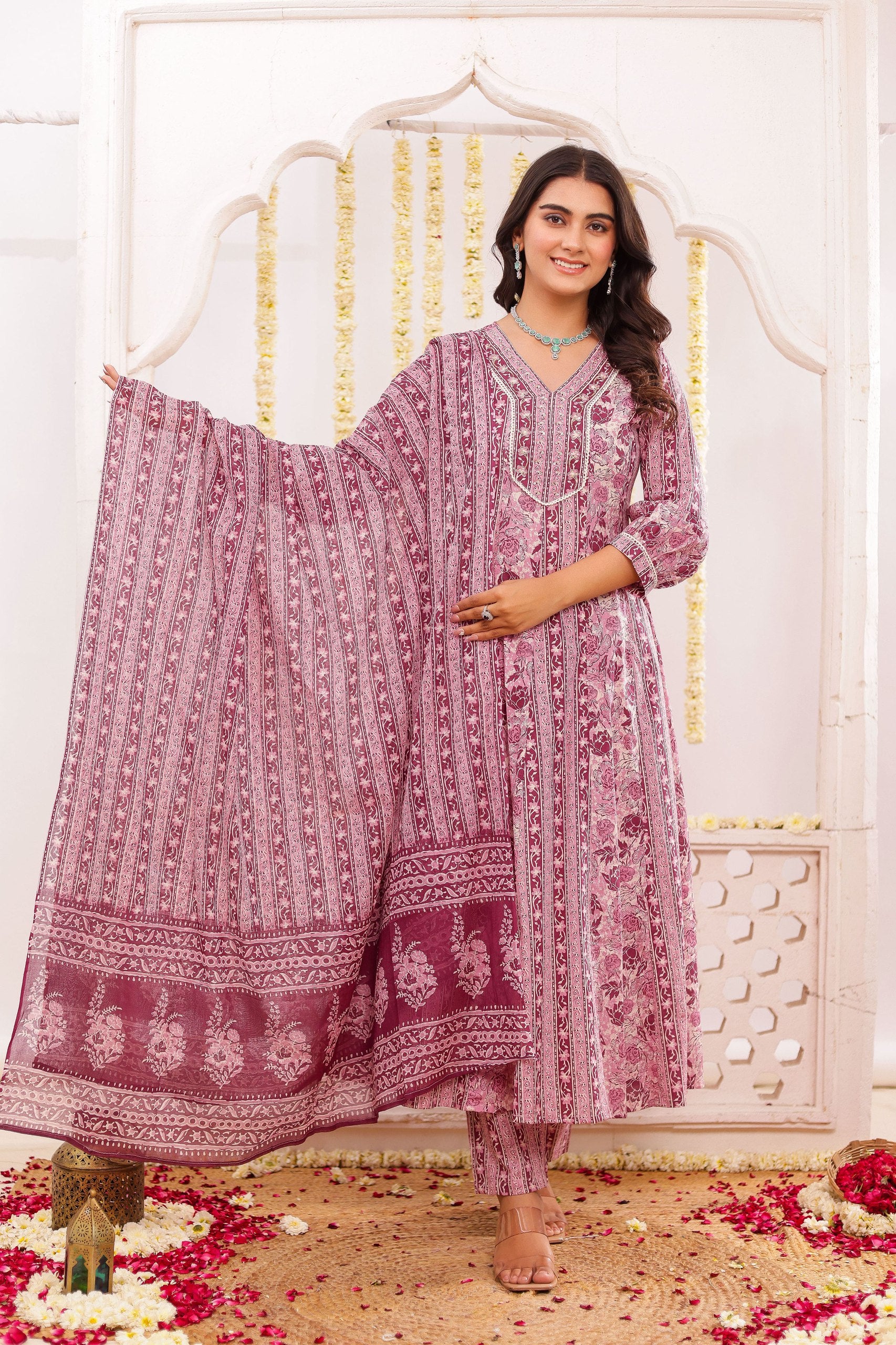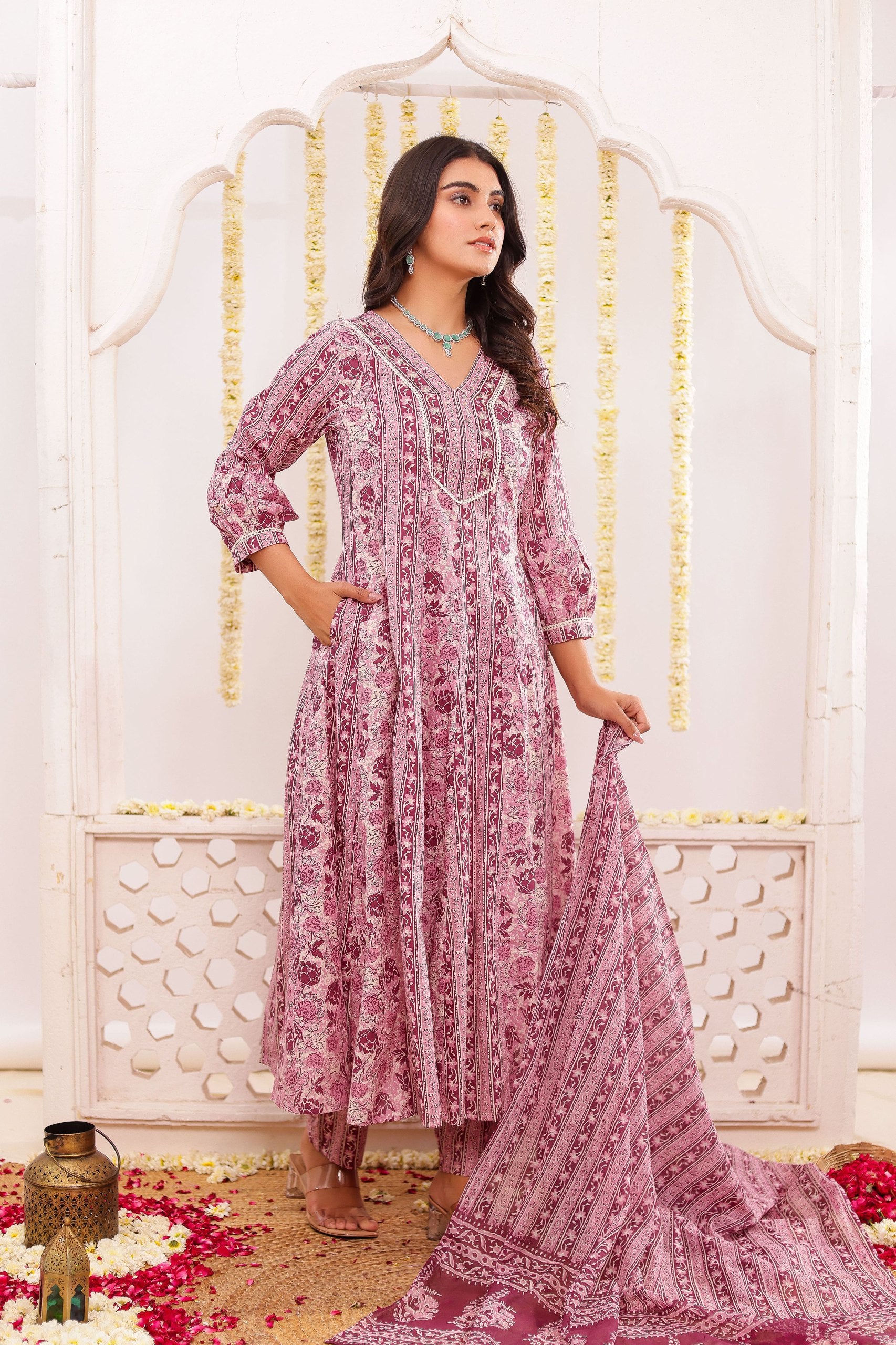 ⭐ No reviews yetA Line Lavender Mul Chanderi Kurti Pant Dupatta Set