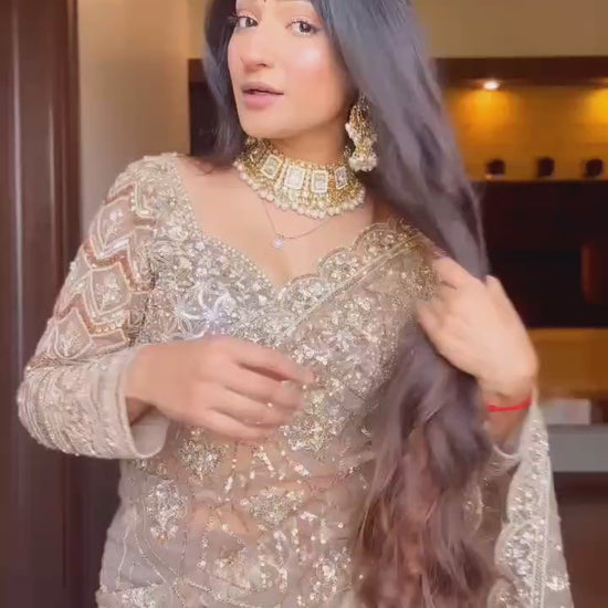 Blouse: Premium Butterfly Net Embellished With Embroidery Work, Jari Work And Beautiful Sequins Work With Sleeve Work (Unstitched)