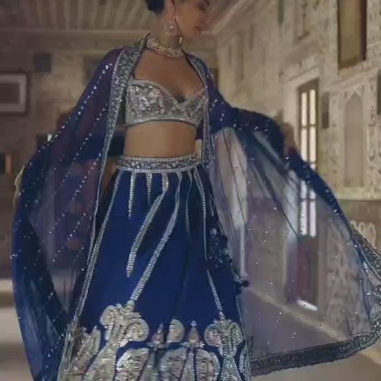 Premium Heavy Slub Nevy Silk Lehenga Embellished With Beautiful Thread Embroidery Work