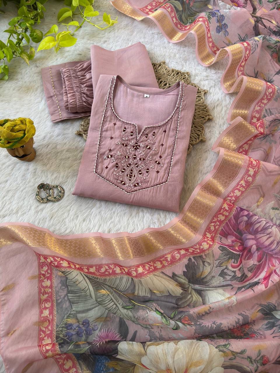 ⭐ No reviews yetA Line Lavender Mul Chanderi Kurti Pant Dupatta Set