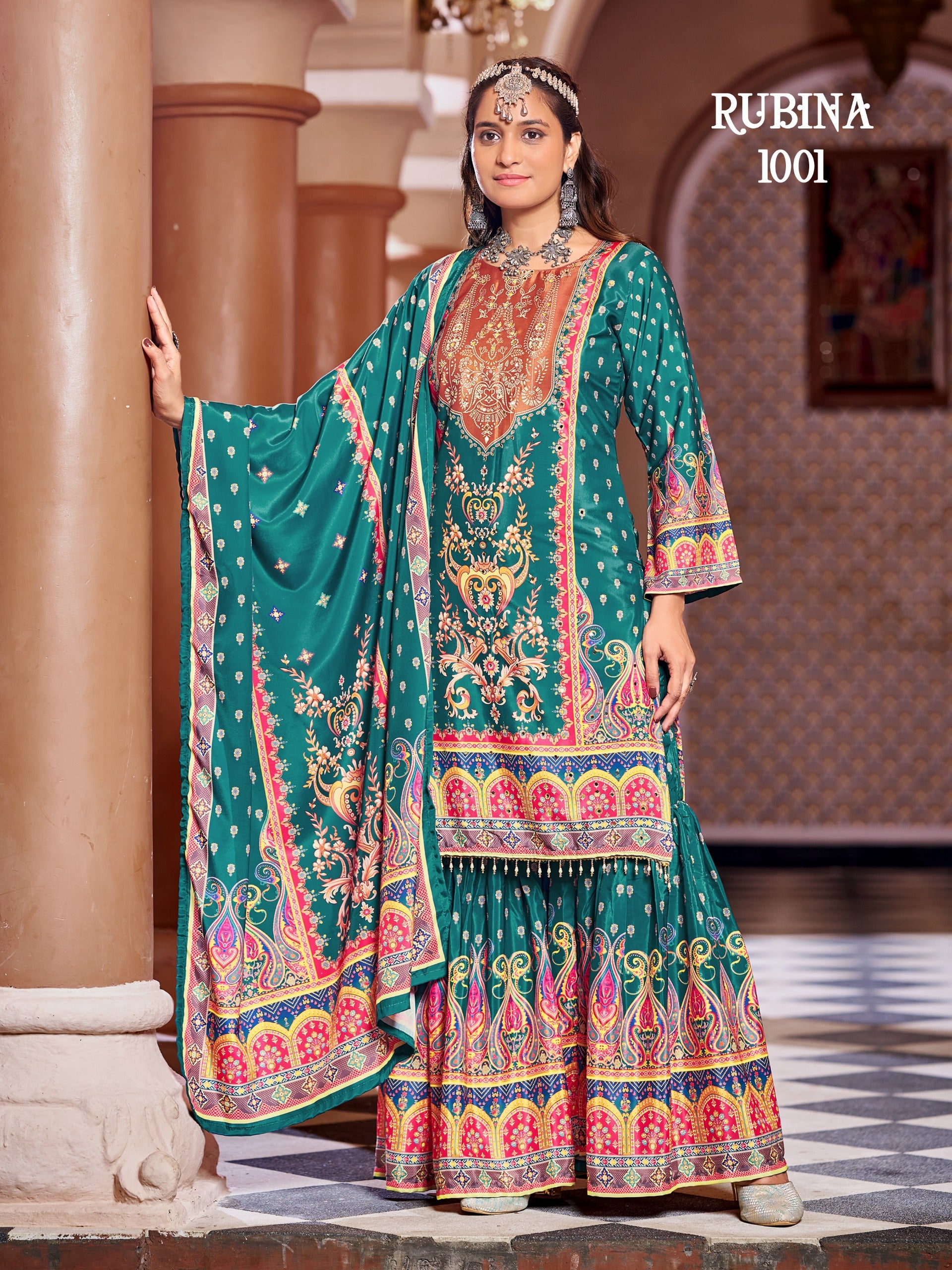 Elevate your ethnic wardrobe with this stunning Rubina Ensemble, crafted in luxurious pure crape silk with vibrant digital prints. Designed for both comfort and style, this outfit is perfect for festive occasions, weddings, and special gatherings.