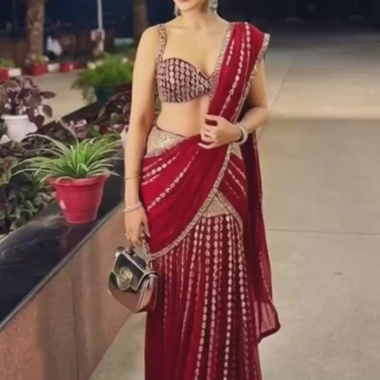 Work: Real mirror Work & Ready to wear with Attached Pallu
