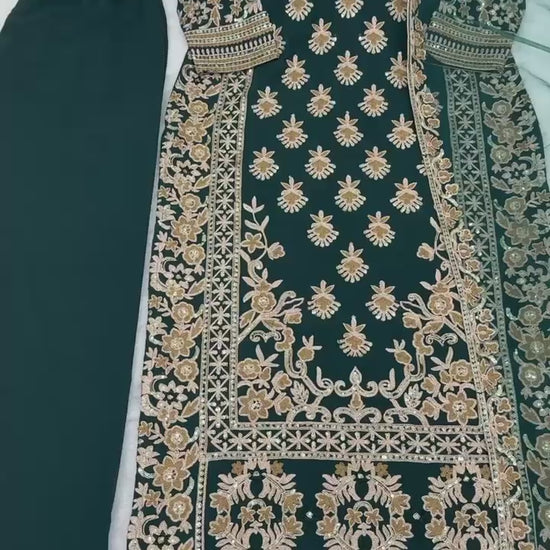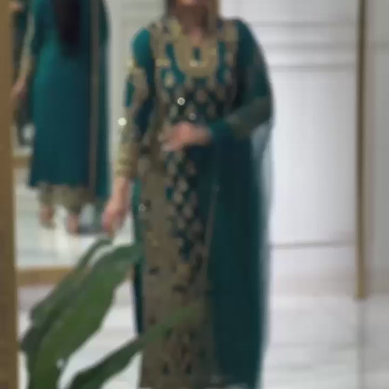 Regal Teal Blue Suit Set with Heavy Gold Zari Embroidery