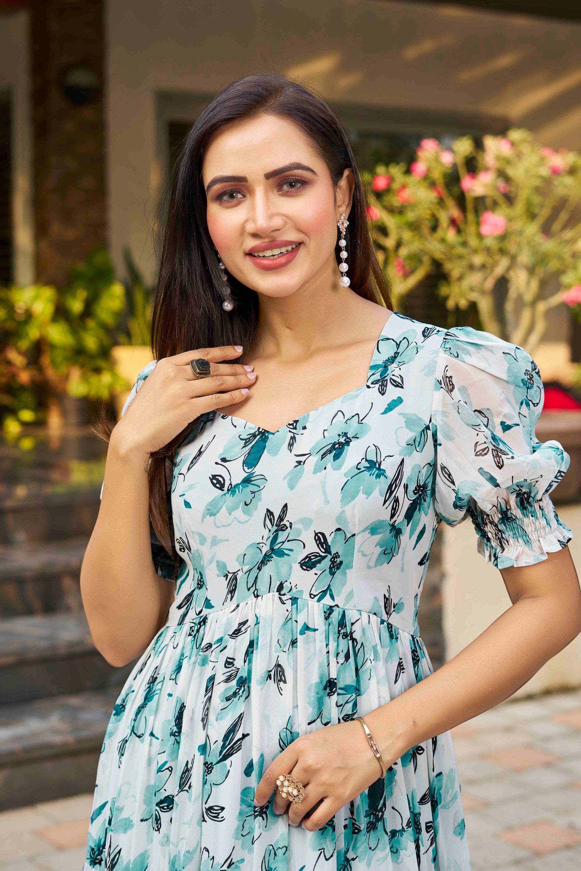 Experience the elegance of effortless style with our premium georgette gown collection. Designed to make you shine with its soft texture, graceful fall, and eye-catching floral prints — perfect for festive occasions or evening gatherings. Add a touch of charm to your wardrobe with this stunning ensemble