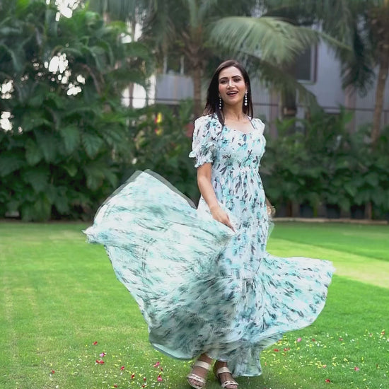 Sky Blue Georgette Floral Maxi Gown