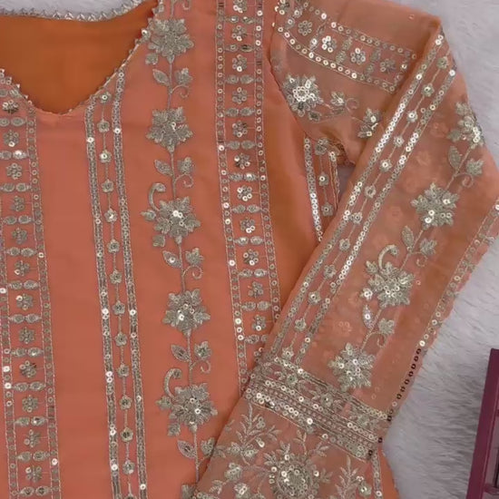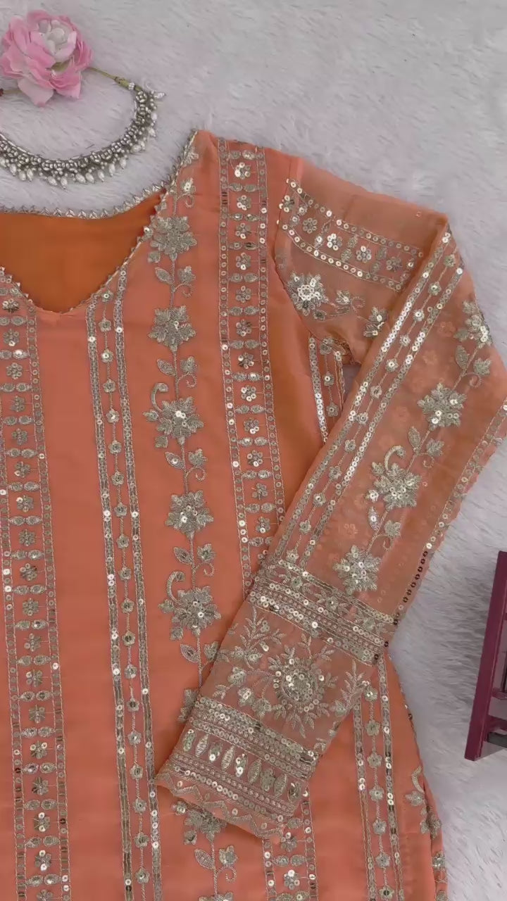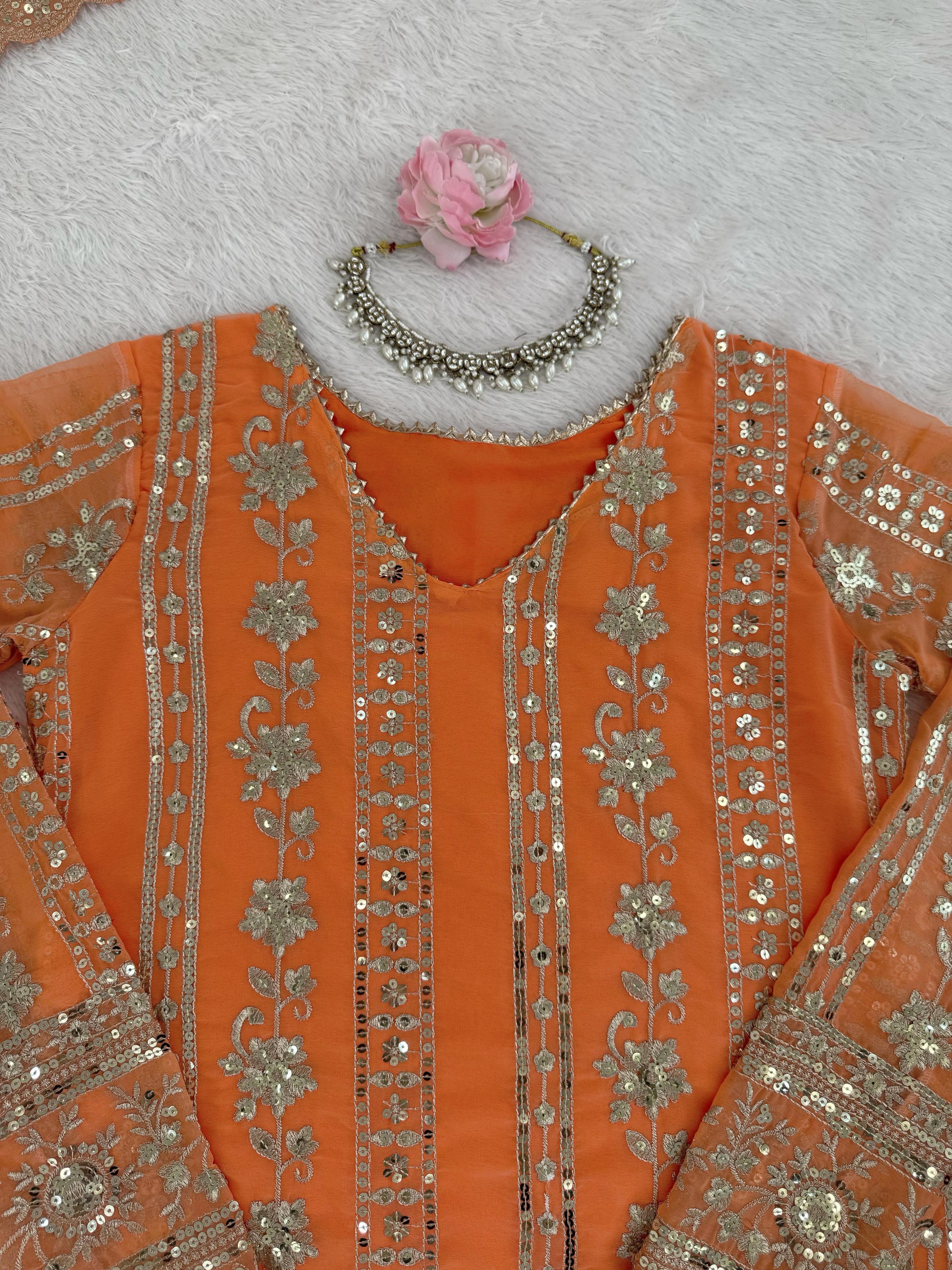 Stylish Faux Georgette Sharara Set with 4-Side Lace Dupatta