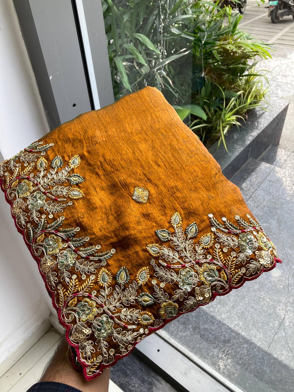 Looking some one for this same colour beautiful Saree for wedding on premium Soft Fendy Chiffon fabric with Embroidery Work Lace Border With Mono banglory Embroidery blouse Peice.