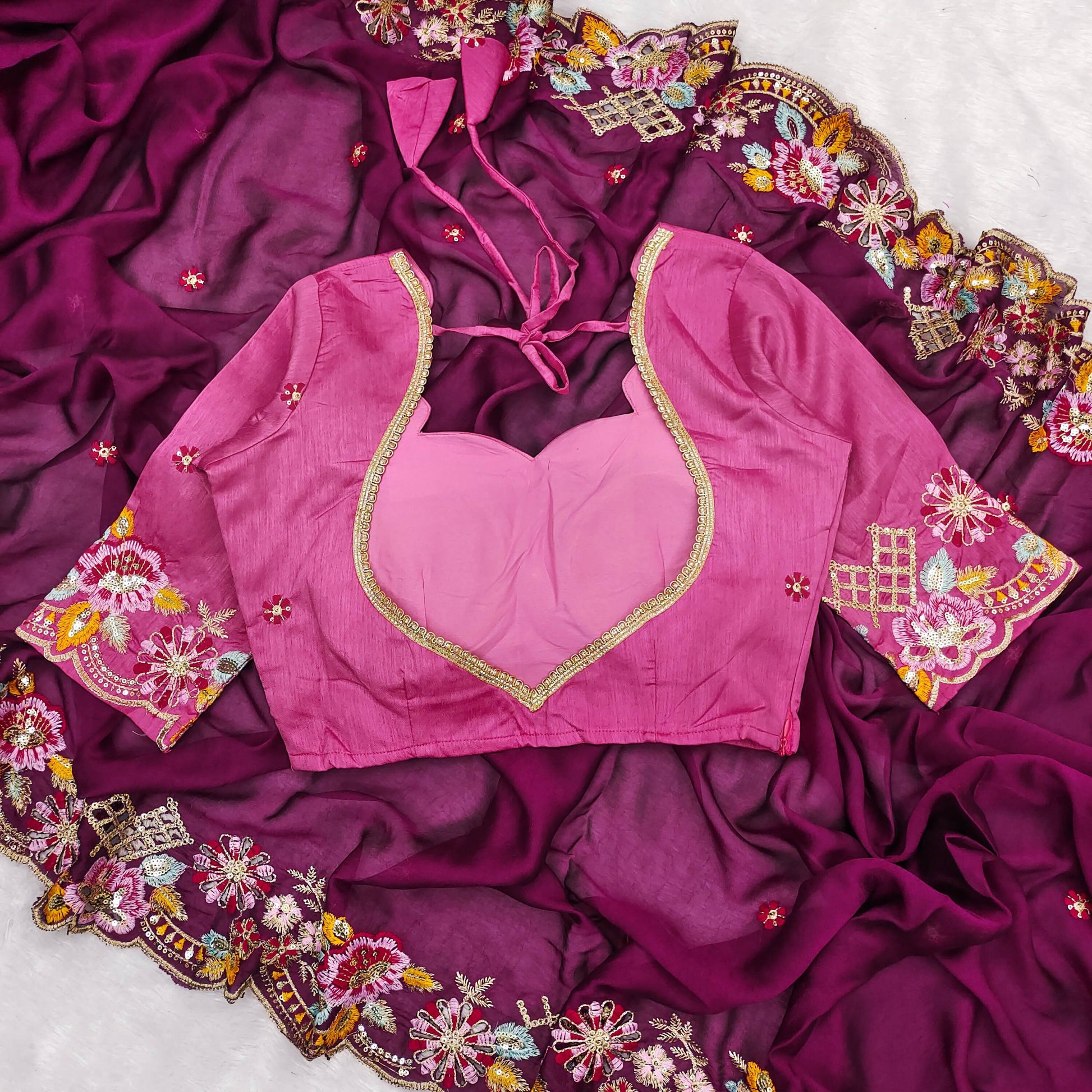 ⭐ No reviews yetBeautiful Handwork Purple Saree With Stich Blouse